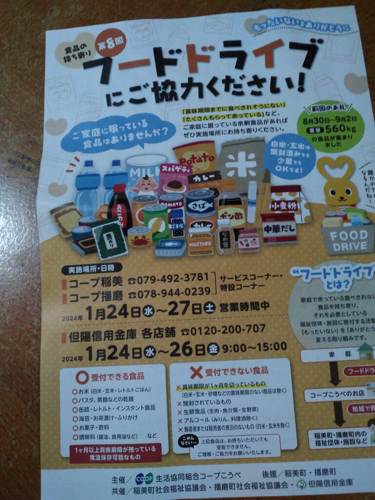 ですが、但陽信用金庫さんが 常設で 集められていることがわかりました(写真には、集められている日にちが記載されていますが、常設です)。